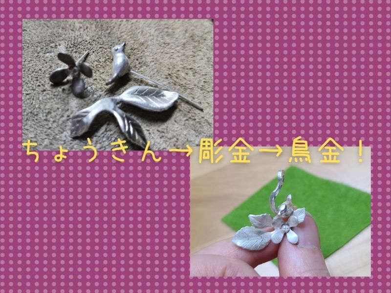 粒々コツコツ・ジュエリー制作ジュエリーデザイン 2021.03.26ちょうきん→彫金→鳥金!小さなパーツを組み立て中、地味な作業です制作中は見た目も地味です作業はまだまだ続きます地味な作業を繰り返し地味な姿も完成すればキラキラピカピカ!素敵な小鳥ジュエリーに変身です♡まるでみにくいアヒルの子みたいだなぁ~完成すれば里親募集しなければ!もちろん有料ですよ!大切にして下さる方大募集です♡